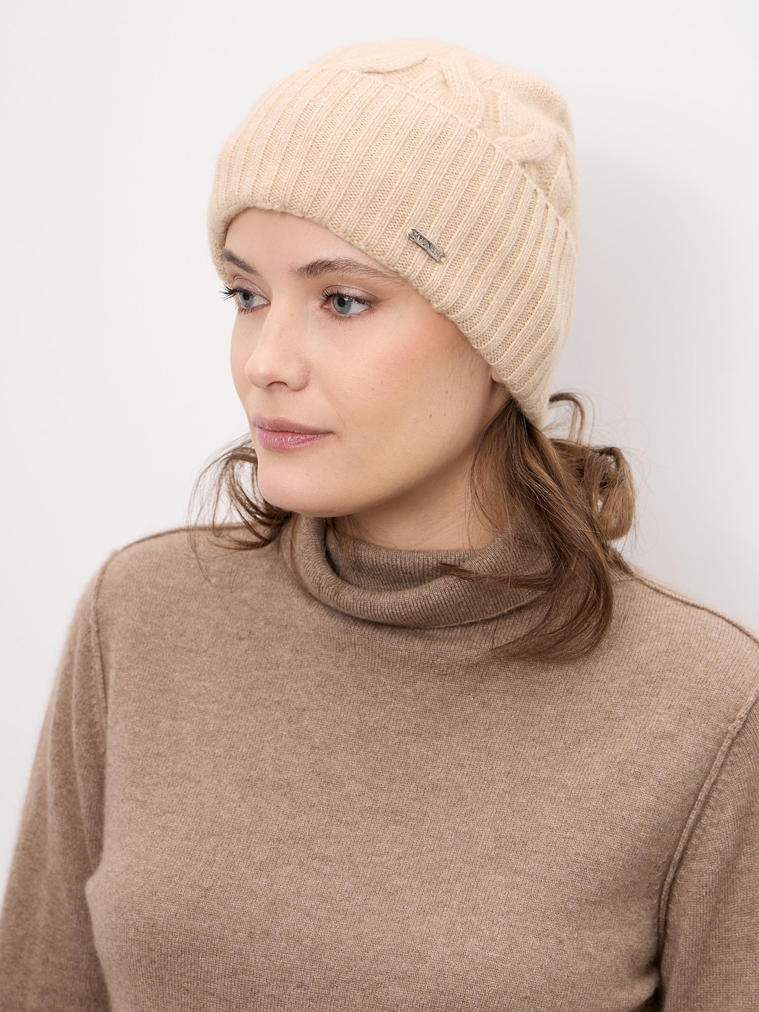 Шапка из кашемира 04343 бежевая