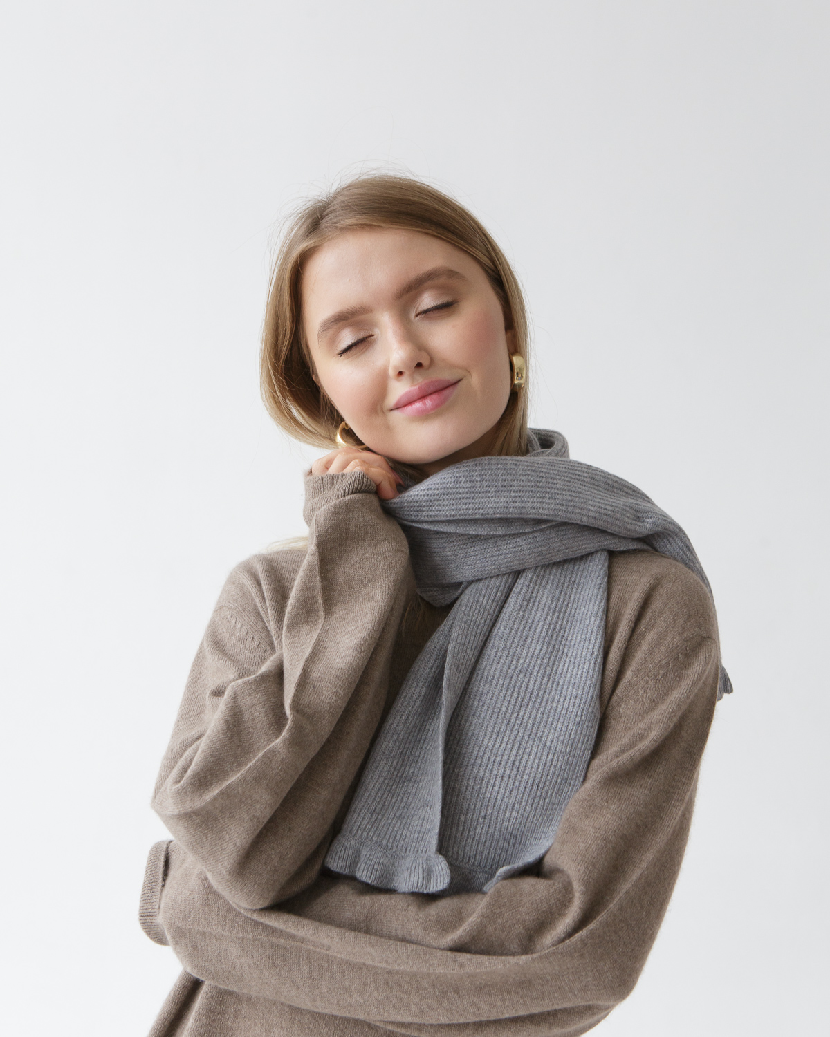 Кашемировый шарф HR в серо-голубом оттенке — элегантный и универсальный аксессуар, который гармонично дополняет повседневные и более утончённые образы. Мягкий и легкий, он мягко окутывает шею, создавая ощущение уюта и тепла. Благородная фактура кашемира и лаконичный дизайн делают шарф стильным элементом базового гардероба.