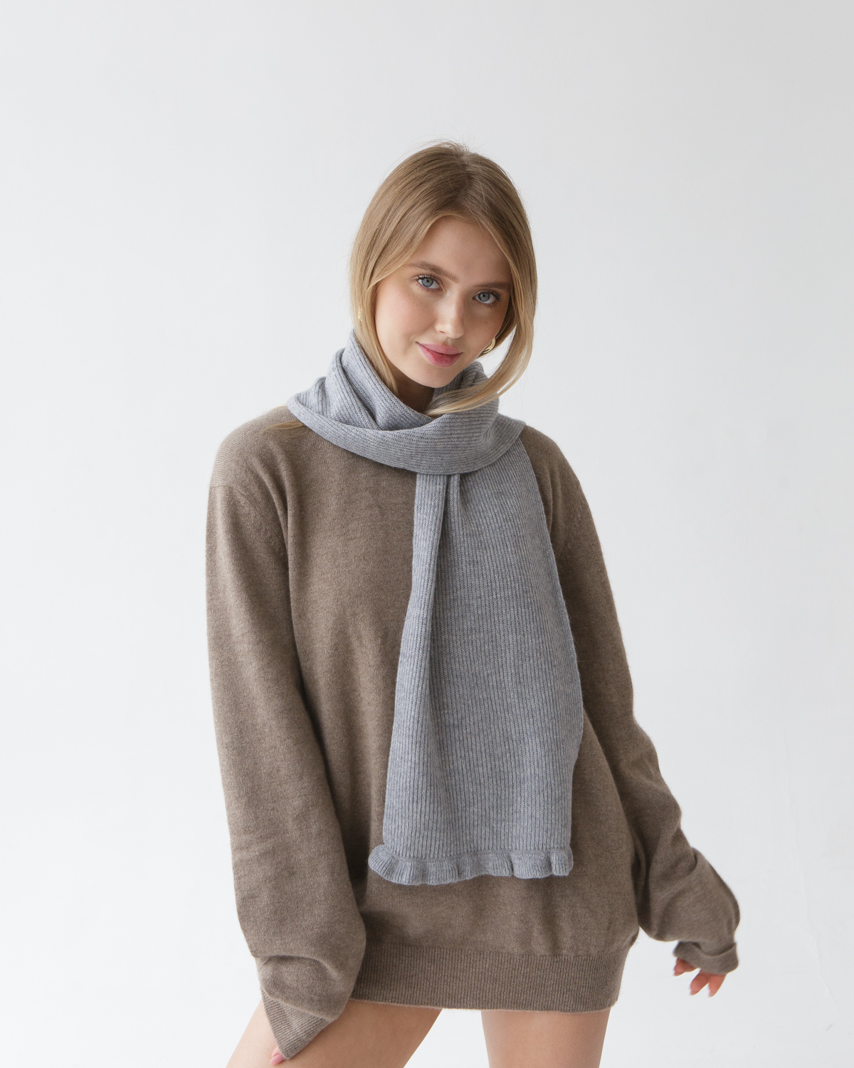 Лёгкий и пластичный аксессуар, который можно носить разными способами — свободно на плечах, обернув вокруг шеи или создавая многослойную драпировку. Подходит для повседневной носки, прогулок и путешествий в прохладную погоду.
