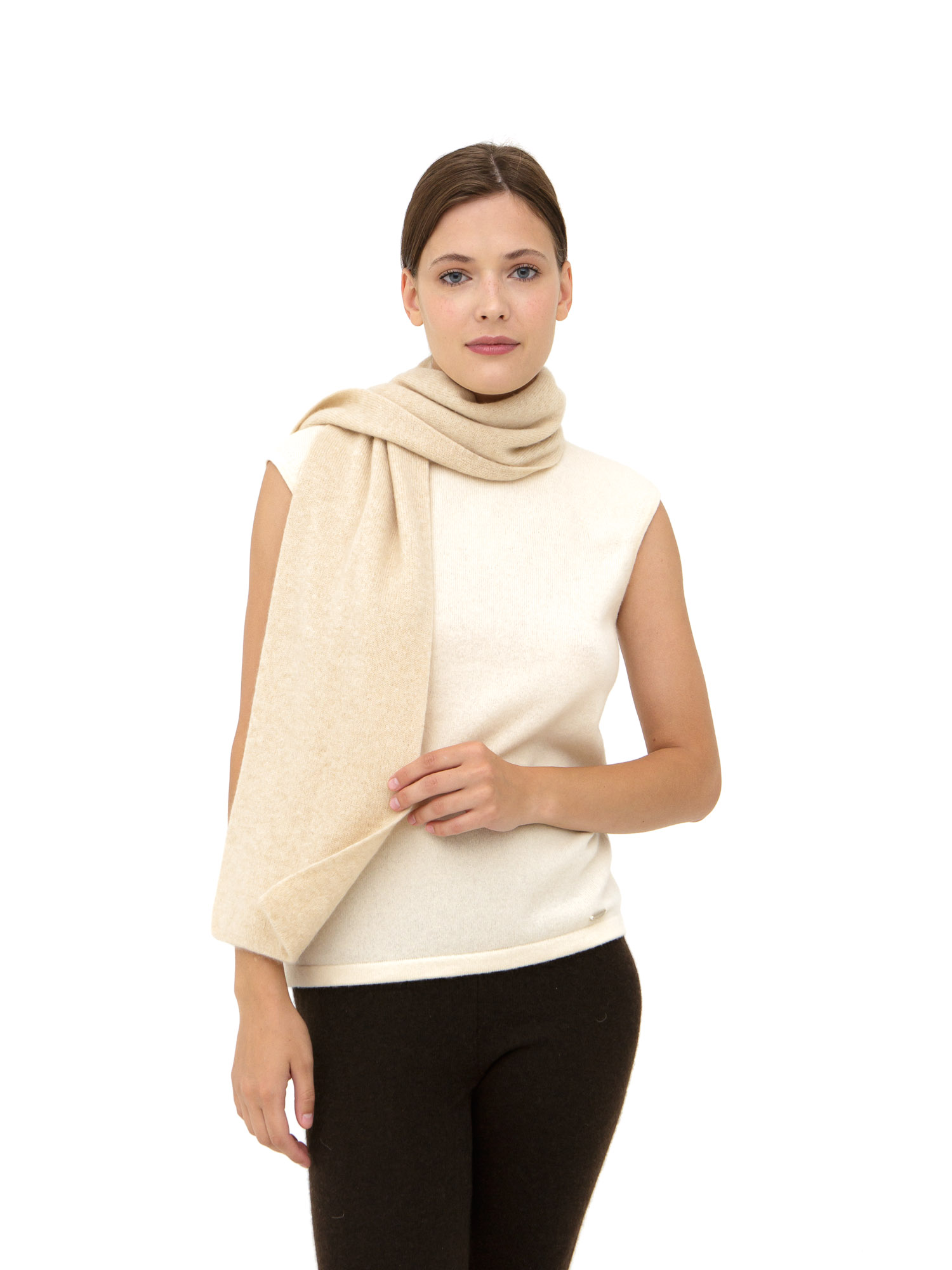 Модель выполнена в классической прямоугольной форме с аккуратной фактурной вязкой. Минималистичный дизайн подчёркивает натуральную текстуру кашемира и делает аксессуар универсальным для различных образов.