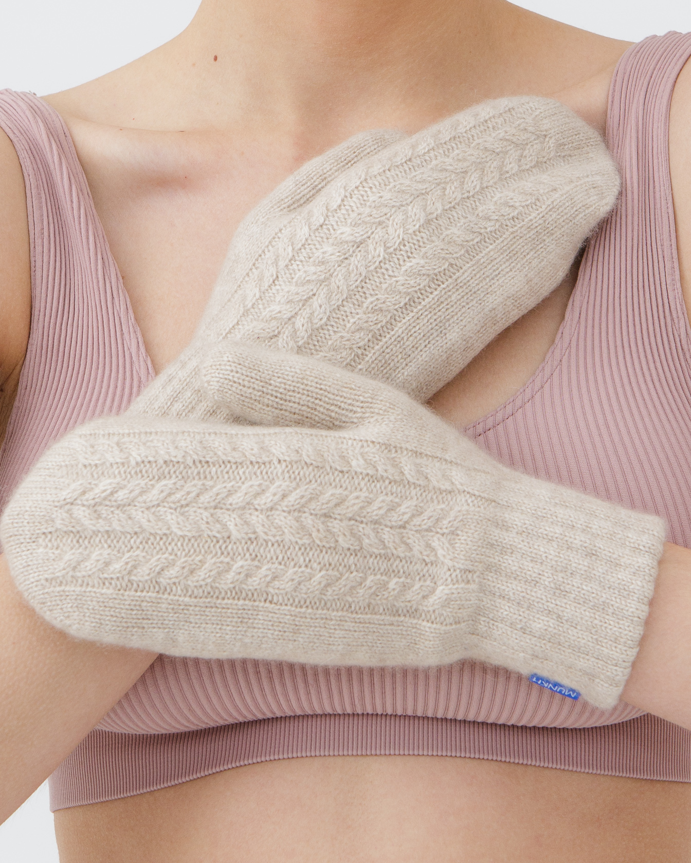 Модель выполнена с акцентом на классический узор «косы», который создаёт объёмную текстуру и подчеркивает премиальность изделия. Лаконичная форма делает варежки универсальными и актуальными вне времени.