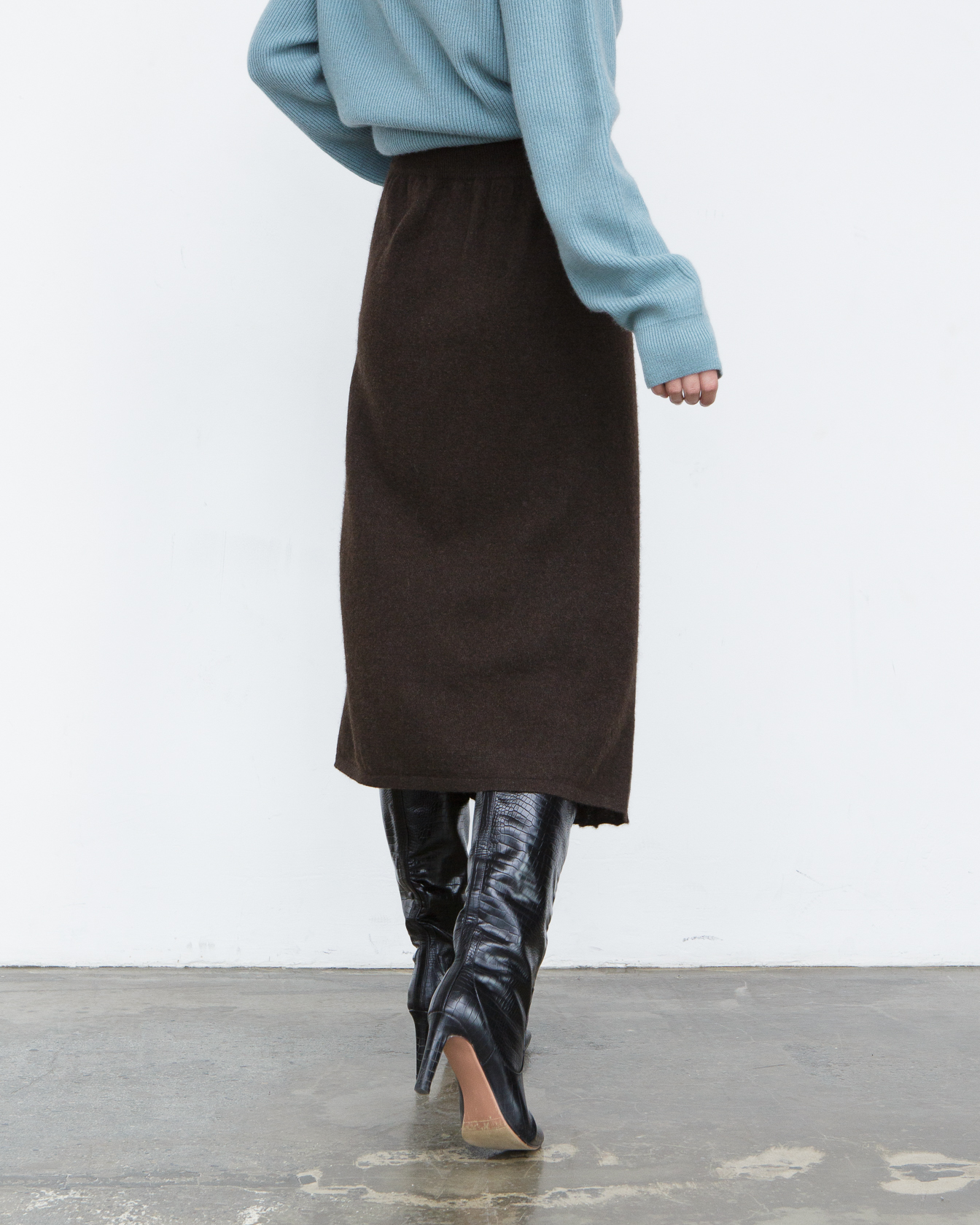 Юбка гармонично сочетается с объёмными свитерами, водолазками и жакетами. Отлично смотрится с ботильонами, сапогами или грубой обувью для создания современного образа.