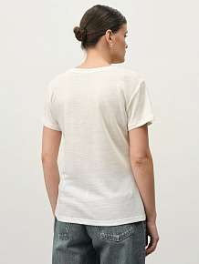 Короткий рукав, аккуратная обработка выреза, мягкая фактура ткани, ровные швы, комфортная посадка.