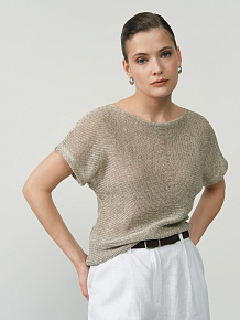 Джемпер льняной Д334 серый меланж