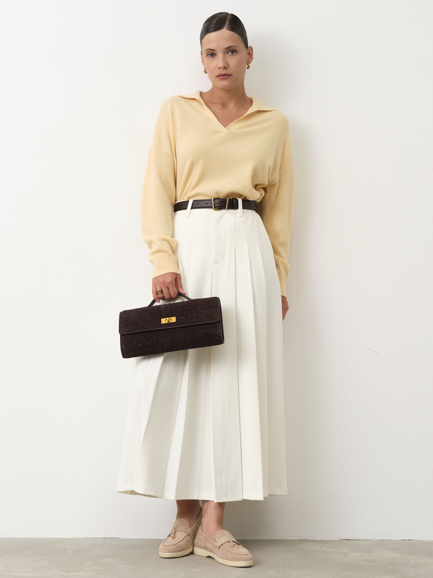 Шампань — тёплый светлый оттенок, легко сочетается с базовыми и акцентными элементами гардероба.