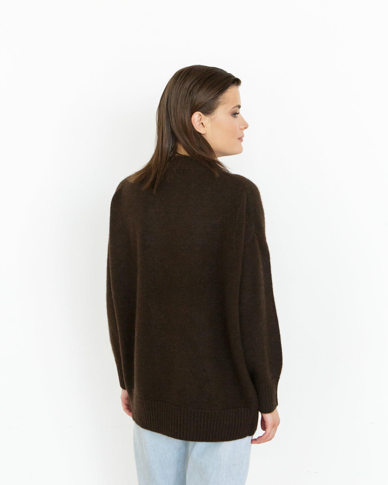 Модель выполнена в минималистичном стиле с круглой горловиной и длинными рукавами. Свободный крой подчёркивает современный силуэт и обеспечивает удобство в повседневной носке.