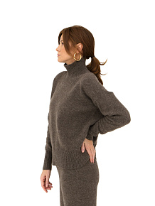 Модель выполнена в минималистичном стиле с высоким воротником и гладкой вязкой. Прямой силуэт и лаконичные линии подчёркивают благородную текстуру натурального материала.