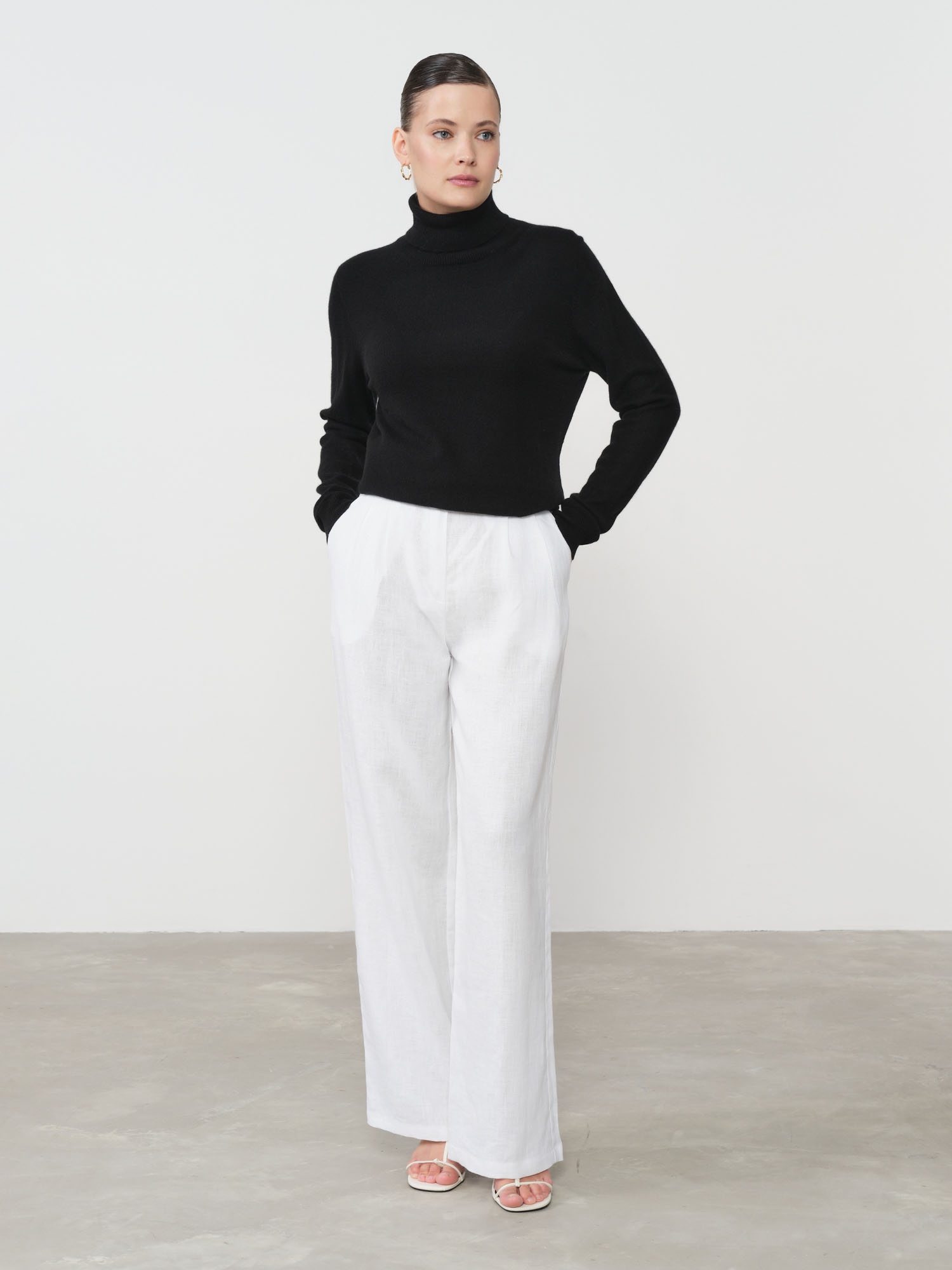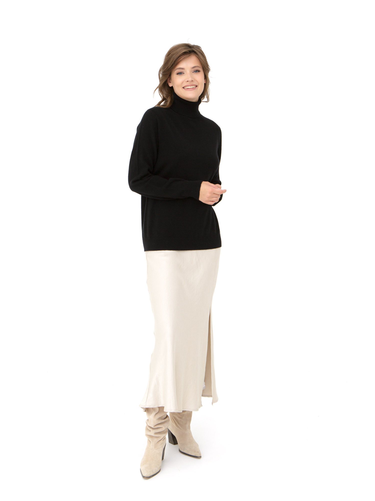 Черный цвет водолазки — это символ универсальности и стиля, который легко сочетается с различными элементами гардероба. Будь то деловой костюм, джинсы или юбка, эта водолазка станет основой вашего образа, добавляя ему строгость и элегантность.