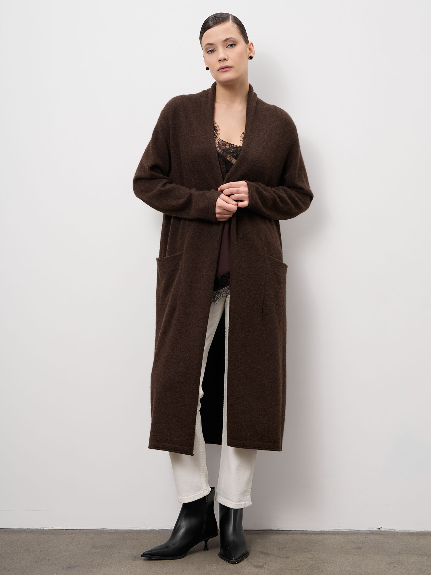 Элегантный удлинённый кардиган из пуха яка — универсальная модель для холодного сезона. Благородная фактура и мягкий силуэт подчёркивают утончённый стиль и создают ощущение уюта и комфорта в повседневных и многослойных образах.